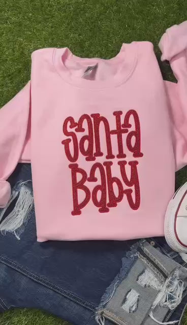Check out this glitter embroidered Santa Baby sweater — it’s giving festive, fun, and full-on fabulous vibes! 💕✨